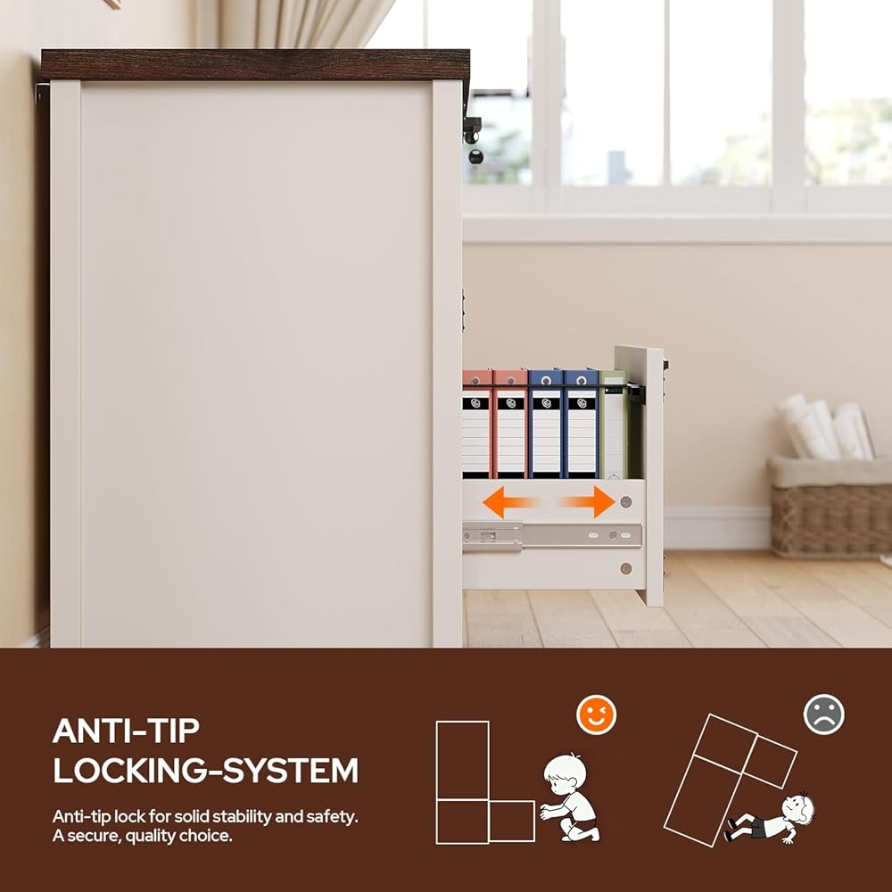 4. Secure & Stable Design This 2 drawer file cabinet features an anti-tip design for added stability. With silent smooth glides and a multi-drawer lock, this office cabinet ensures quiet operation and secure protection.