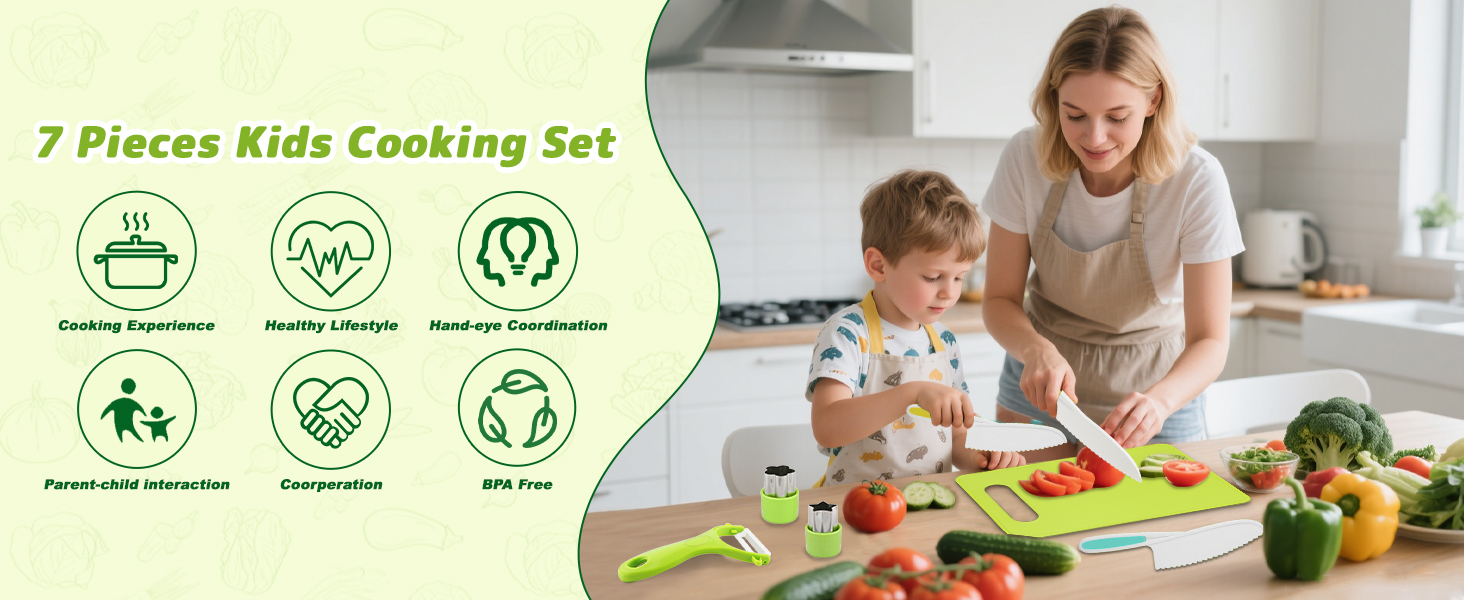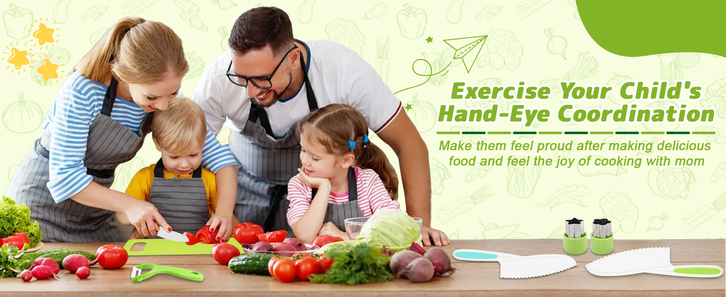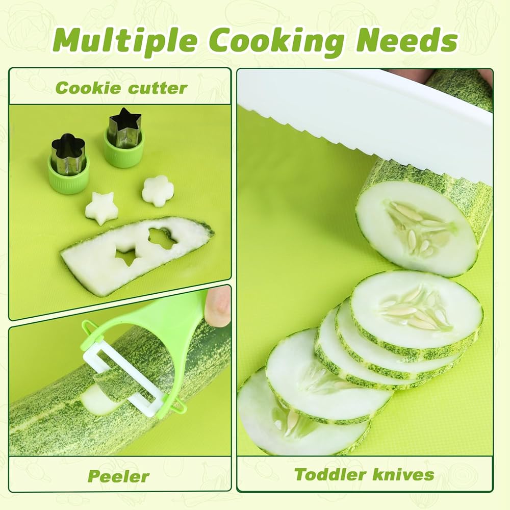 【Creative Gift for Kids】Your kids will be eager to join you with this toddler knife set in kitchen. Stimulate kid's interest and let them enjoy cooking time with your family. It fosters cognitive growth and enhances parent-child interaction through shared kitchen activities