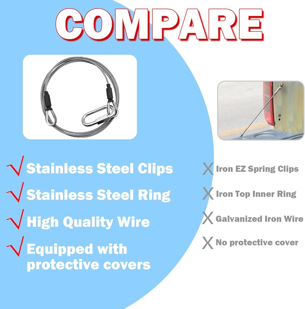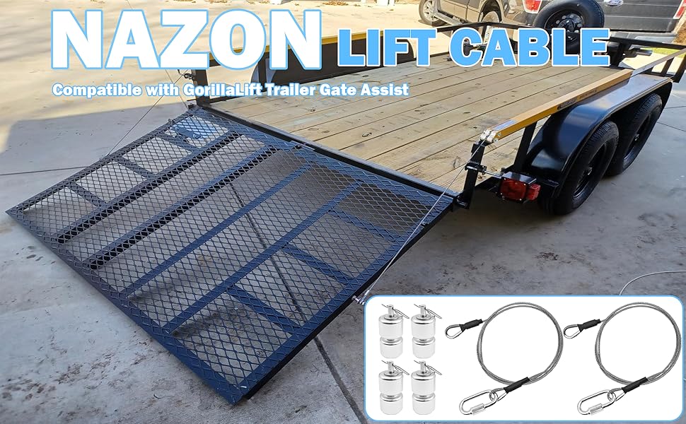 The NAZOU lift cable kit includes 2 high-quality lift cables, 2 EZ spring clips and 4 aluminum alloy rollers, providing exceptional support and durability. Gorilla Lift cables and components ensure your trailer gate assist functions smoothly.