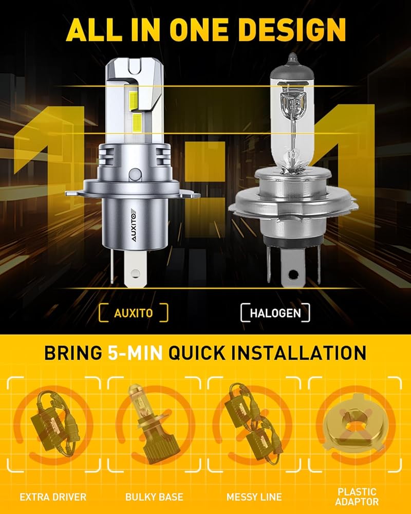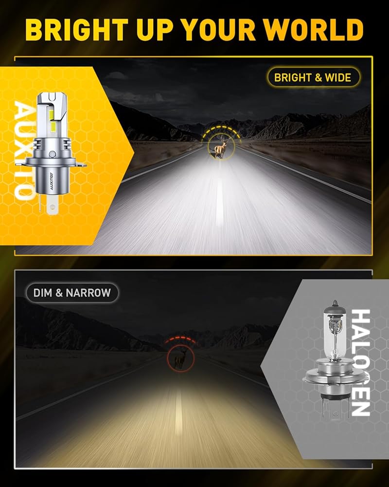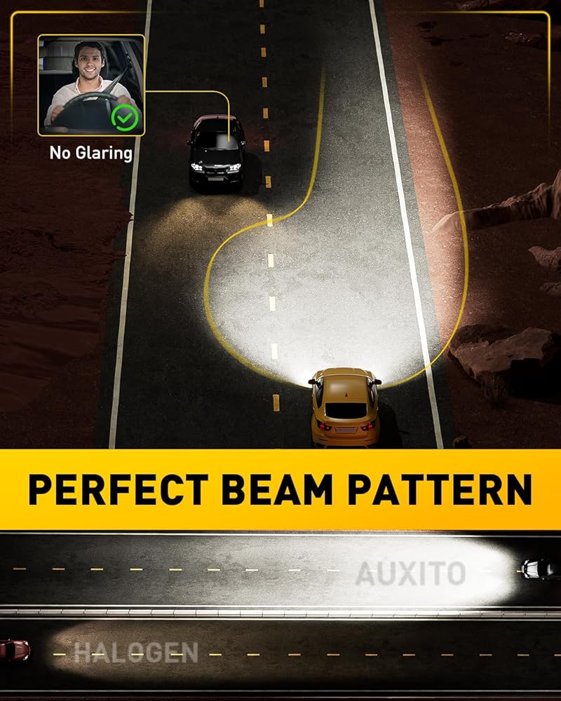 Perfect Beam Pattern — Clear & Focused Light: AUXITO's advanced chip technology features an ultra-thin 0.04-inch emitting surface and 16 chips per bulb. The result? A sharp, even spread of light that enhances your view without blinding other drivers.