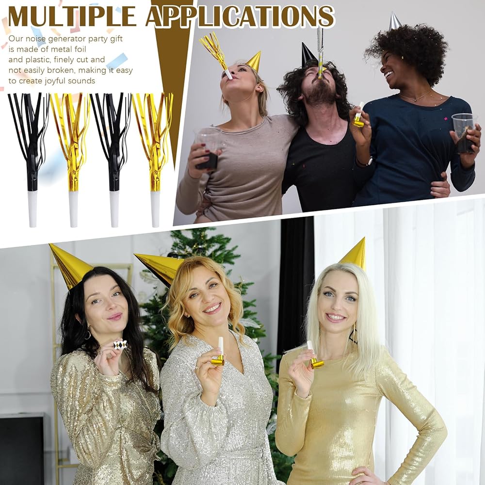 Lenwen 200 Pcs New Years Eve Noisemakers Favor 2026 Happy New Year Gold Silver Blower Horns Whistles Party for Birthday Celebration Sporting Events (Black,Silver,Gold)