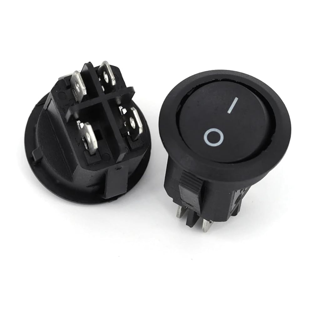 This versatile round rocker switch features built-in LED illumination for enhanced visibility in low-light conditions, making it perfect for automotive, marine, and industrial applications. With its compact 20mm diameter design, this switch seamlessly integrates into dashboards, control panels, and other space-constrained installations. The switch supports both 12V and 24V DC systems and carries impressive ratings of 6A at 250V AC or 10A at 125V AC. Available in 2, 3, or 4 pin configurations, it offers flexible wiring options to suit various setup requirements. The durable black housing and clear LED indicator provide reliable on/off status indication, while the rocker mechanism ensures smooth, positive switching action. This professional-grade switch is ideal for custom vehicle modifications, boat electronics, industrial equipment, and other power control applications where reliable performance and clear status indication are essential.