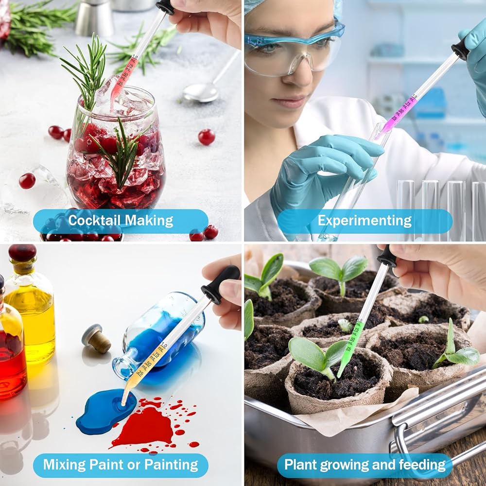【Widely used】The dropper is suitable for measuring and transferring a variety of liquids, such as scientific experiments, arts and crafts, skin care and beauty, essential oils, painting, eye drops, children's feeding medicine , pet feeding.