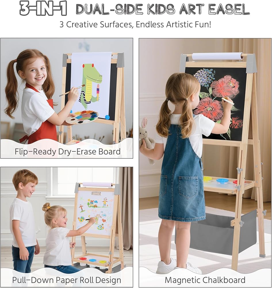 The Perfect Choice to Spark Imagination: Ideal for ages 3+, this art easel makes a fantastic birthday or holiday choice; It fosters both independent & cooperative play, helping kids develop creativity, social skills, and expressive confidence