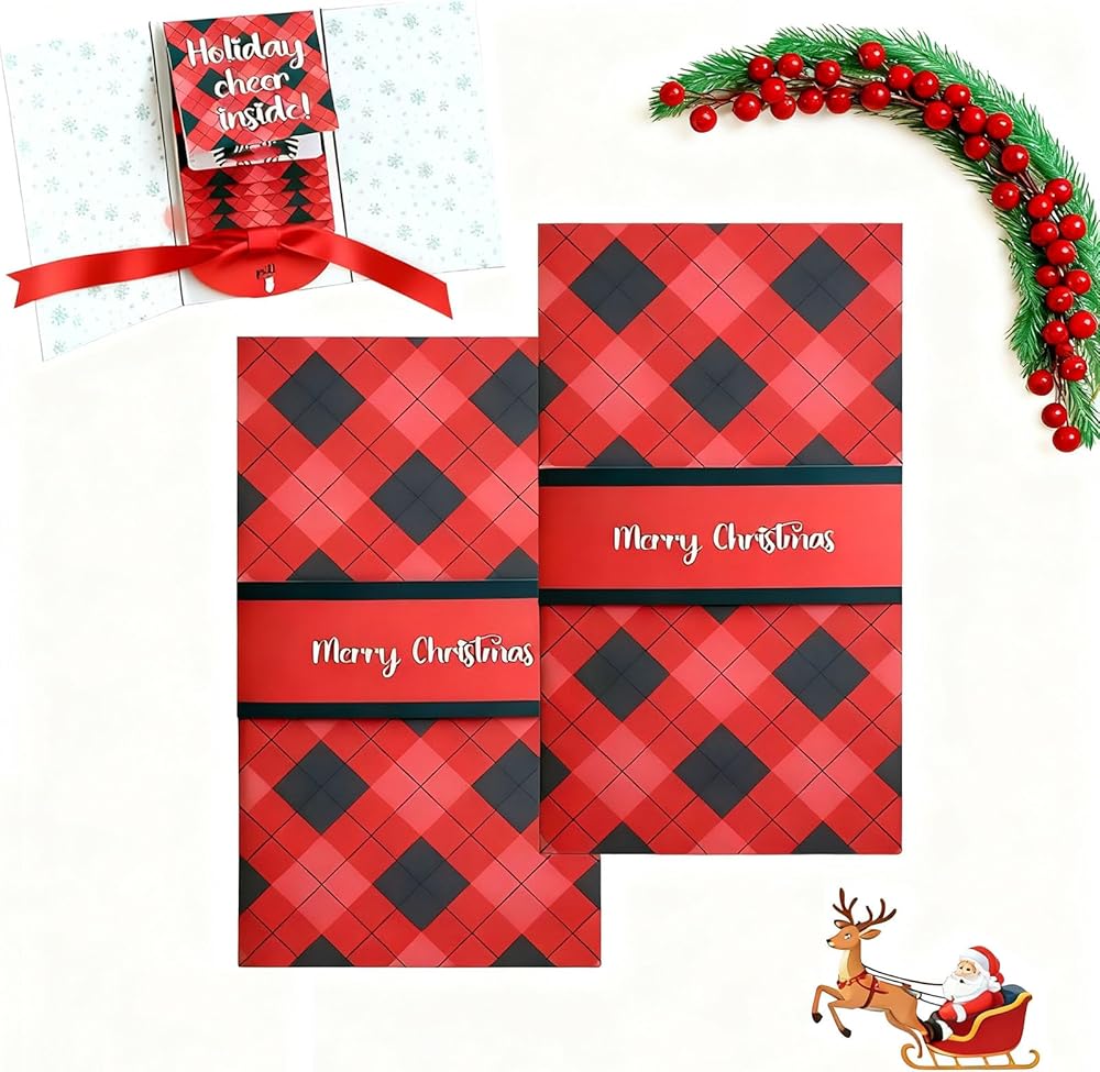2PCS Handmade Waterfall Christmas Gift Card Booklet with 4 Slots,Party Gift Supplies