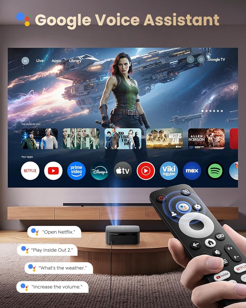【Official Google TV Built-In for Limitless Streaming】The True Smart Projector K13 comes with the latest official Google TV, giving you full access to thousands of apps without restrictions. Enjoy instant streaming on YouTube, Disney+, Prime Video, Plex, HBO Max, Peacock, Apple TV, and more – no web versions, no app limits, no lag. Its upgraded system ensures sharp, vibrant images and smooth casting from iOS, Android, Mac, and Windows devices. Just sign in and start your ultimate movie or binge-watching night in seconds.