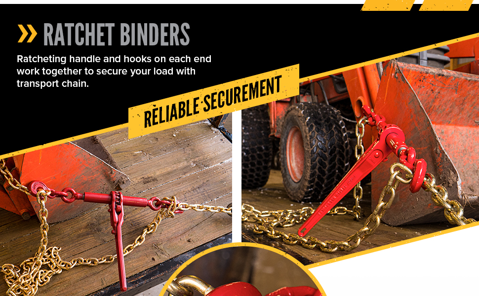 VERSATILE - These ratchet load binders are designed for use with 5/16 inch grade 70 transport chain and can also accommodate 3/8 inch grade 43 chain.