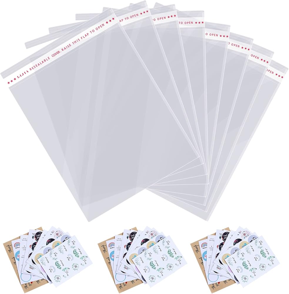 Value pack: This value pack includes 150 large resealable cellophane bags. These large cellophane clothes bags can be for multipurpose use. It can be used as cellophane self-sealing bags for clothes, gifts wrapping, and even for party favors. The resealable plastic bags have self-adhesive resealing strip.