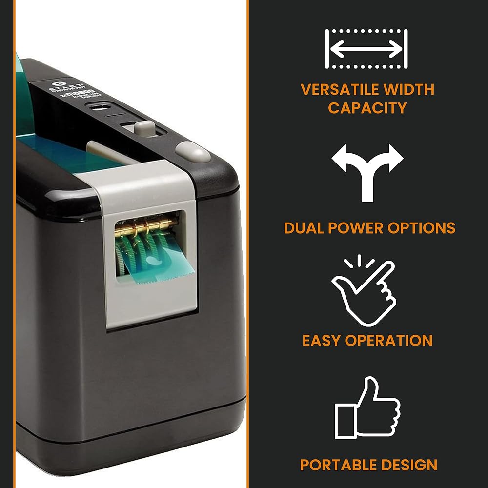 Dual power flexibility: Operates with included AC power adapter or 3 D-cell batteries for portable use. This automatic tape dispenser provides uninterrupted performance perfect for desk setups, mobile workstations, shipping departments.