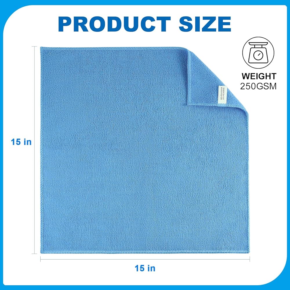 Perfect Size for Everyday Use – 15"x15":The ideal 15x15 inch size makes these microfiber towels versatile for car detailing, glass cleaning, kitchen counters, household dusting, and more. Compact yet large enough for all cleaning needs.