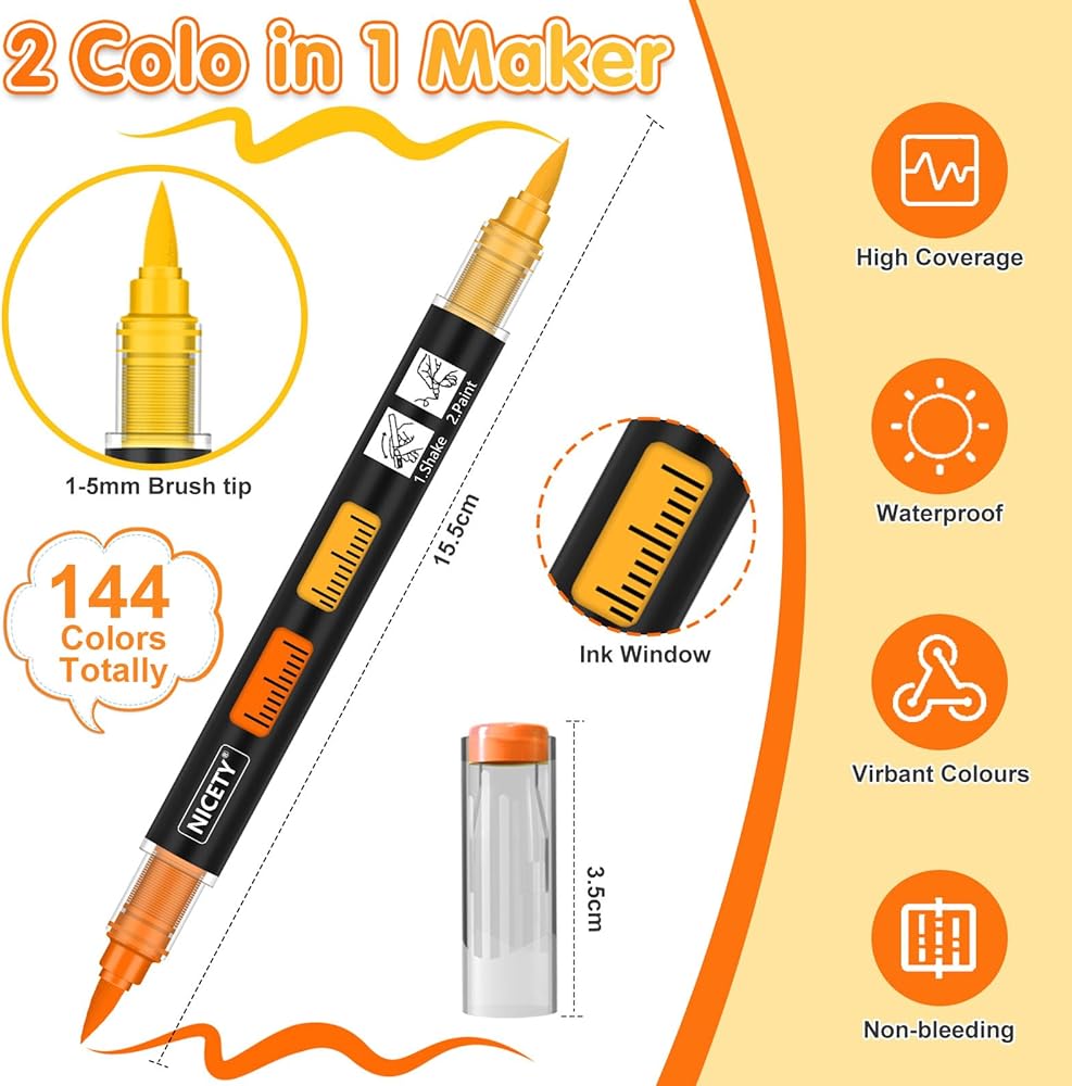 【144 Vibrant Colors】This expanded set delivers 144 rich shades using 72 dual-color acrylic paint markers. Each color layers smoothly and provides strong, opaque coverage on both light and dark surfaces.