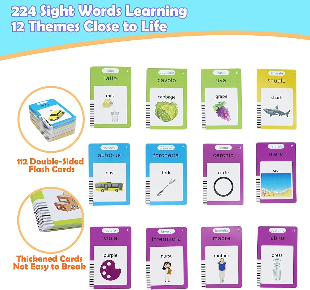 🎁【Two Modes, English & Spanish Bilingual Mode and English Only Mode】This speech buddy talking flash card learning toy contains 255 double-sided cards, 510 sight words, a learning card reader and Each card is printed with Spanish and corresponding English. It is more suitable for preschool learning for boys and girls aged 1 2 3 4 5, increase vocabulary, improve cognitive ability and memory.