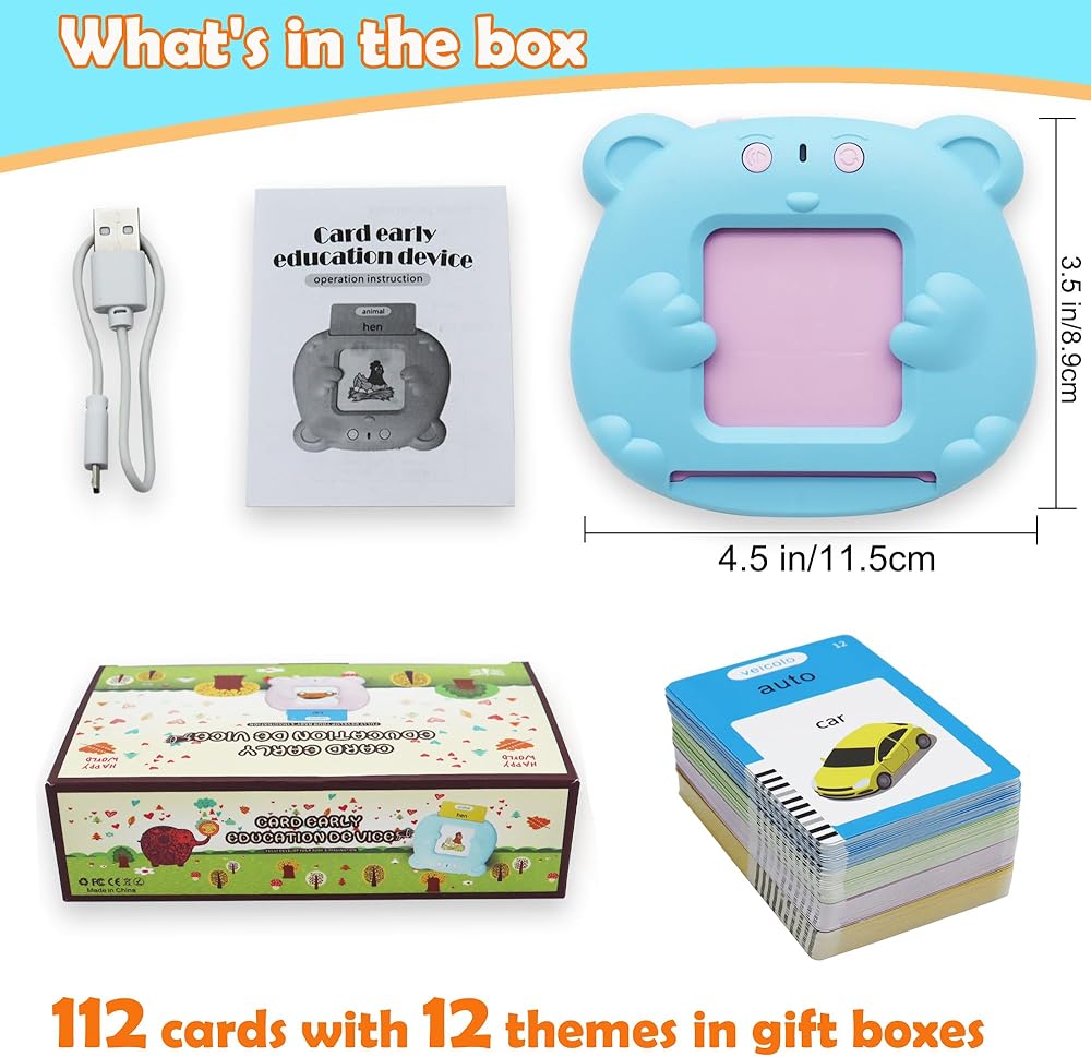 🎁【Lightweight & Portable Easy to Use】This children educational learning cards machine is easy for little toddler to use,just insert the cards to reading machine, then it works.Comes with a storage bag so your child can play anytime, anywhere.