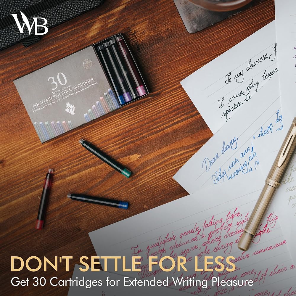 Wordsworth & Black 30 Pack Fountain Pen Ink Refills - Set of 30 Assorted Ink Cartridges - International Standard Size - Length APPR 2.3" - Base Diameter APPR 0.24" - Disposable and Generic