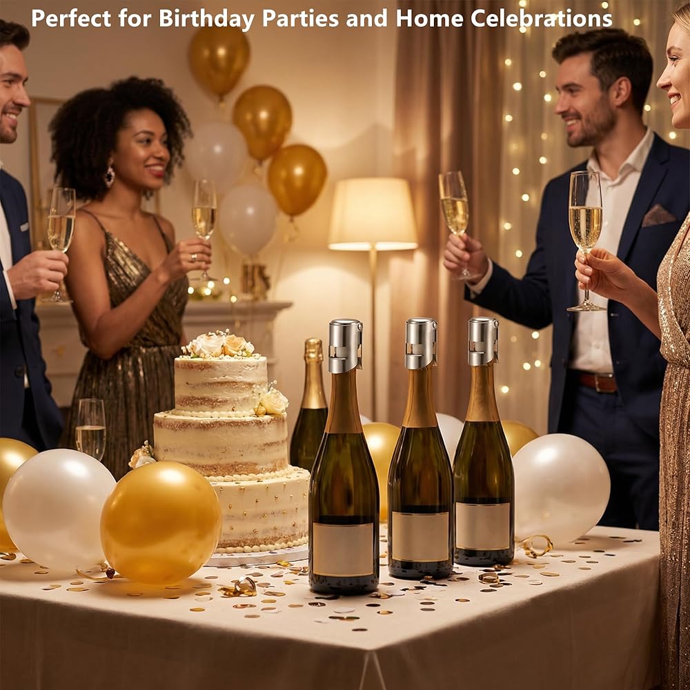 I-MART Pack of 6 Stainless Steel Champagne Stoppers, Prosecco, Sparkling Wine Bottle Stopper, Cork