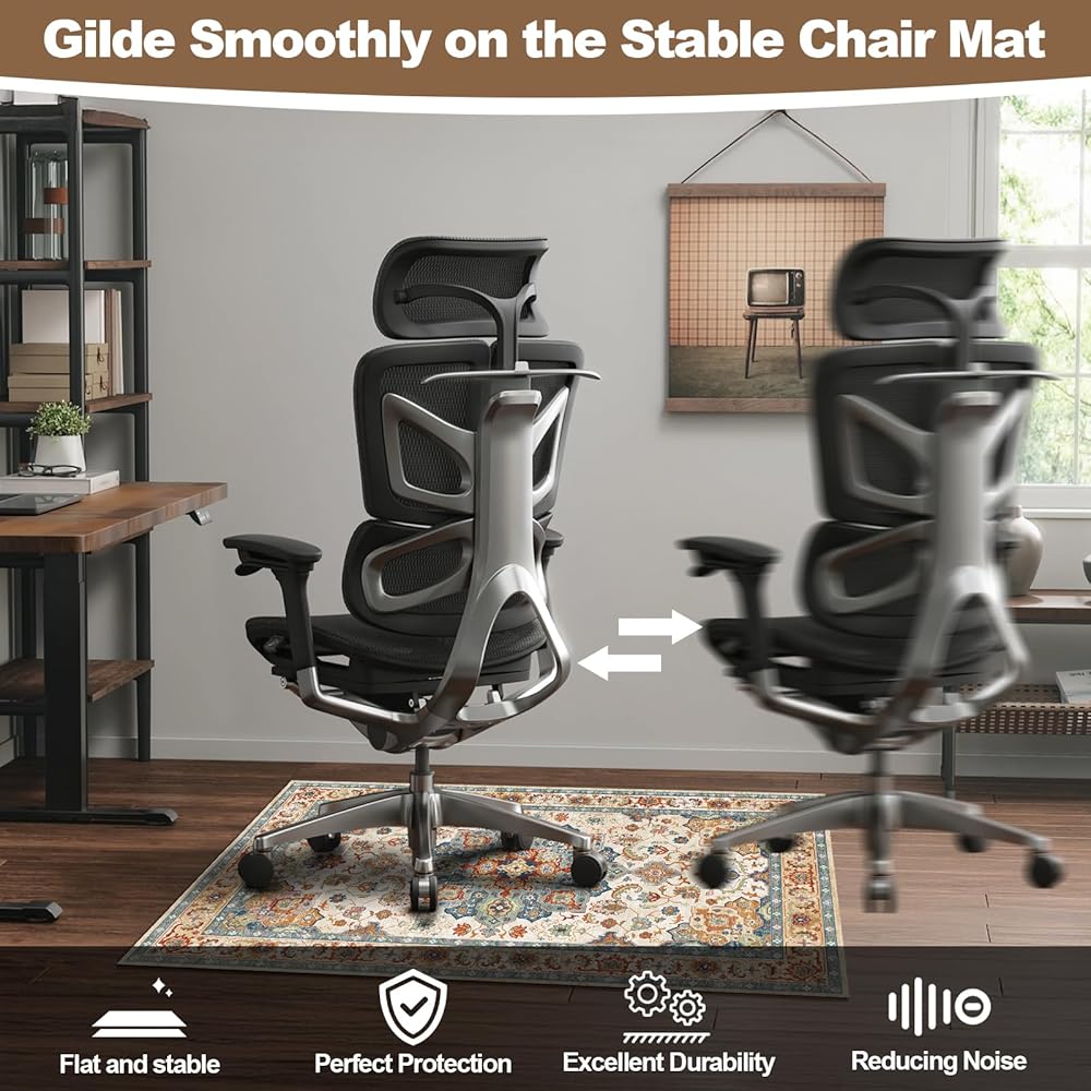 ▶ Non-Slip Floor Mat for Office Chair: The desk chair mat for hardwood floor provides a secure, non-slip bottom that keeps it firmly in place, allowing smooth rolling of chair without shifting. Floor protector for rolling chair effectively absorbs pressure from the chair, reducing noise and providing a stable, comfortable surface for long-term use.