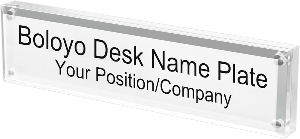 Professional Polishing : Boloyo Business Desk Name Plate has undergone 3mm inclined polishing on all four sides, which results in a better visual effect. Can be keep everyone's eyes more focused on the information you display.