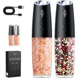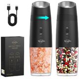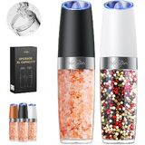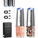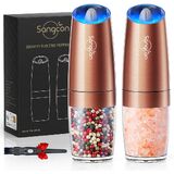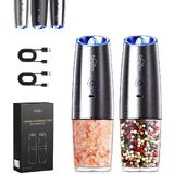 Sangcon Gravity Electric Salt and Pepper Grinder Set 𝐔𝐩𝐠𝐫𝐚𝐝𝐞𝐝 𝟗𝐨𝐳 𝐗𝐋 𝐂𝐚𝐩𝐚𝐜𝐢𝐭𝐲 Battery Powered Refillable Automatic Operation Adjustable Coarseness Mill Grinder Shakers Set