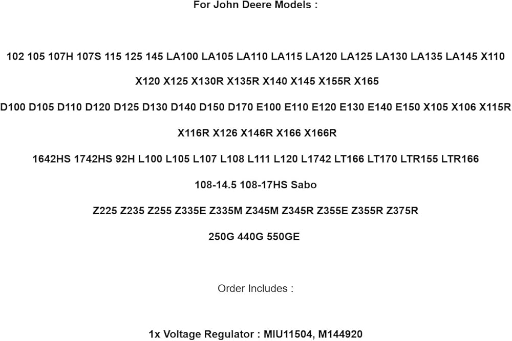 Replacement for John Deere Voltage Regulator for X155R X165 D100 D105 D110 D120 D125 D130 D140 OEM