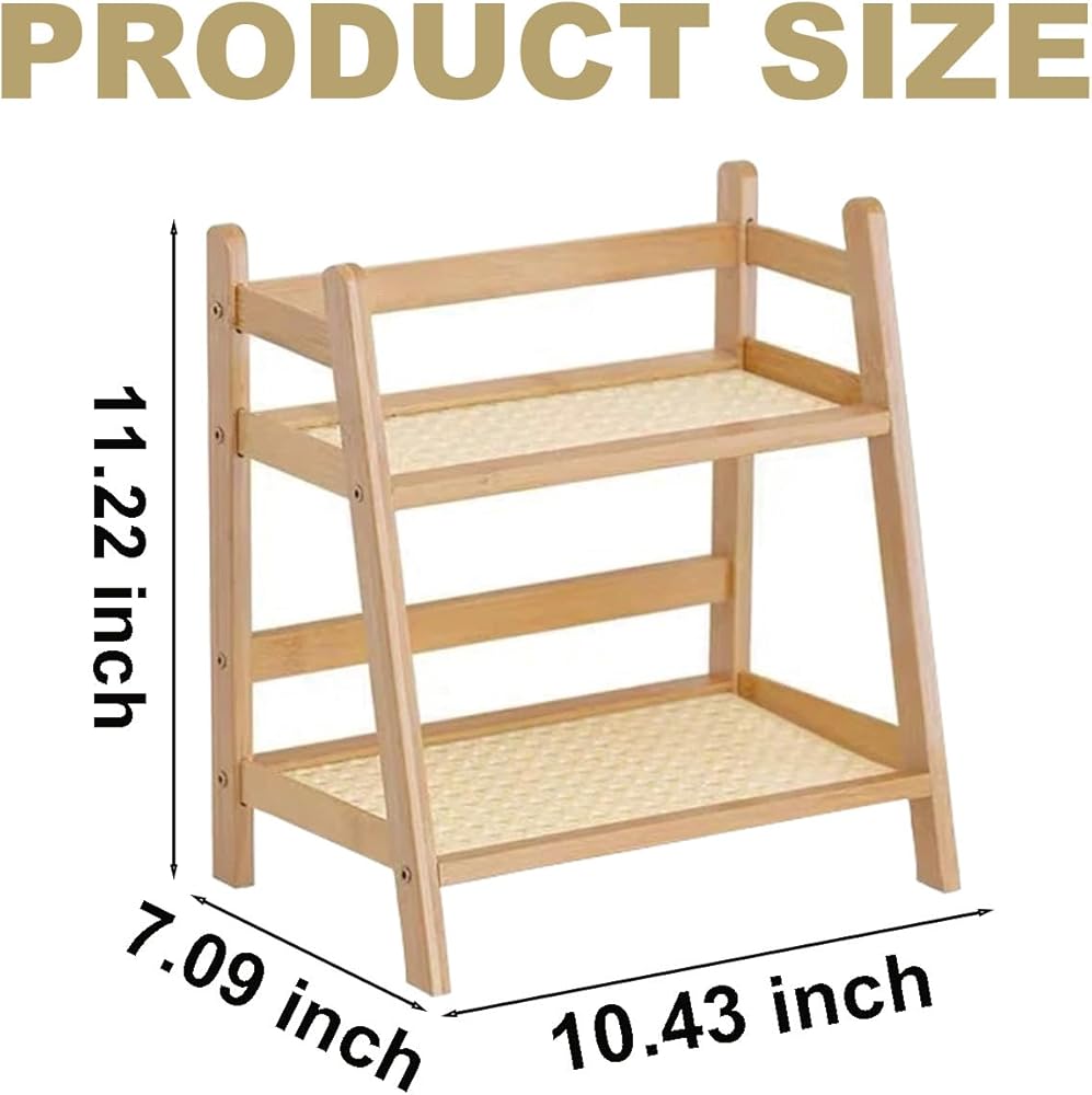 Sleek Wooden Two-Tier Design: Add functional charm to your space with this Wooden Two-Tier Shelf, a compact tabletop rack with natural wood finish and woven shelves, standing out on kitchen counters, office desks, or dining room tables. It turns cluttered areas into tidy spaces, making it a Tabletop Shelf that blends style and utility