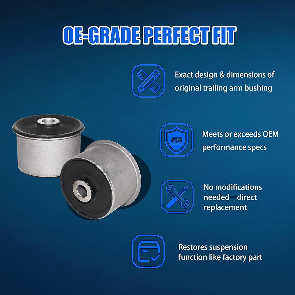 ✨【OE-Grade Fit】Precision-engineered to match the exact design, dimensions, and performance of your vehicle's original trailing arm bushing. It meets or even exceeds OEM specifications, ensuring it fits seamlessly and operates just like the factory part. No modifications needed to restore your suspension's original functionality.