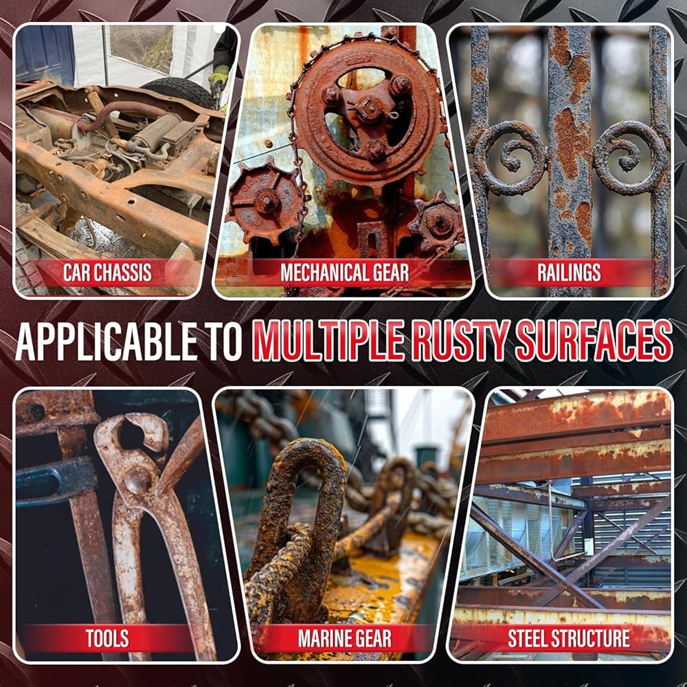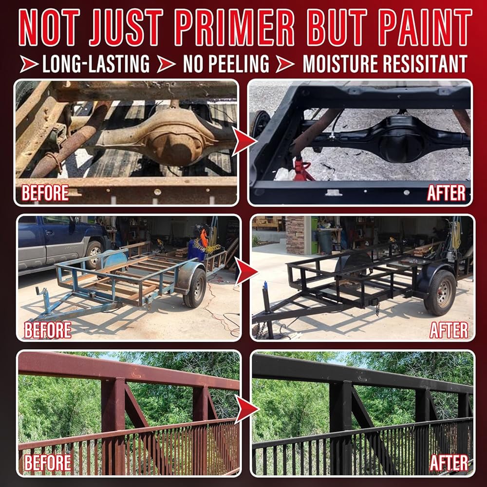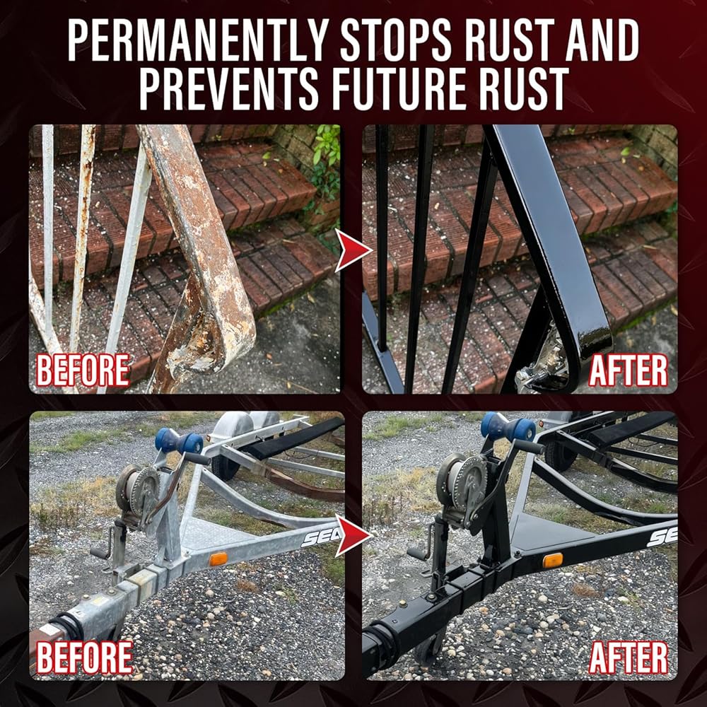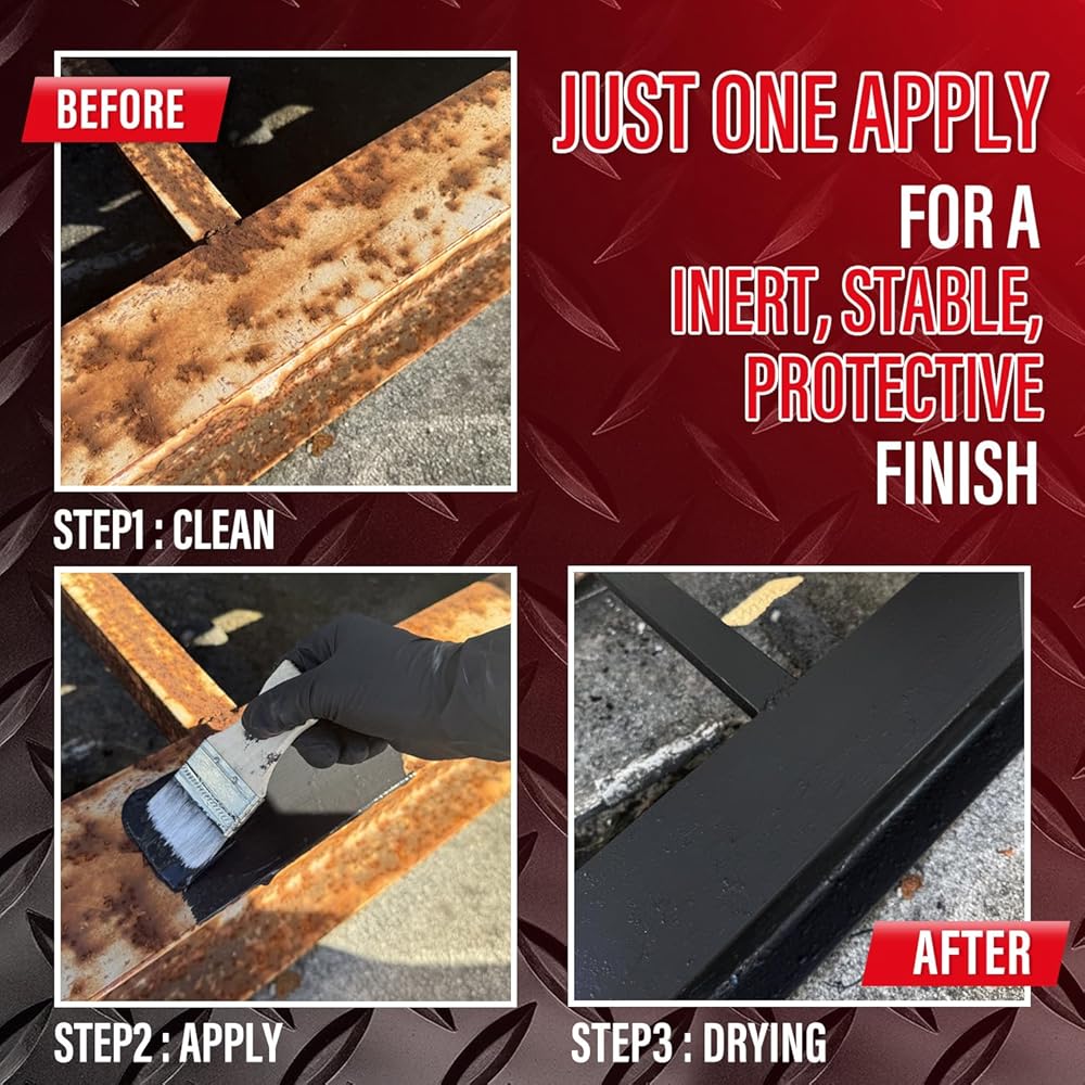 Prevents Further Rust & Spread in Minutes: Once apply, it converts the stubborn rust instantly into a stable, paintable flat black finish, sealing out moisture, salts to prevent further oxidation or rust & corrosion spreading; for all rusty metal surfaces