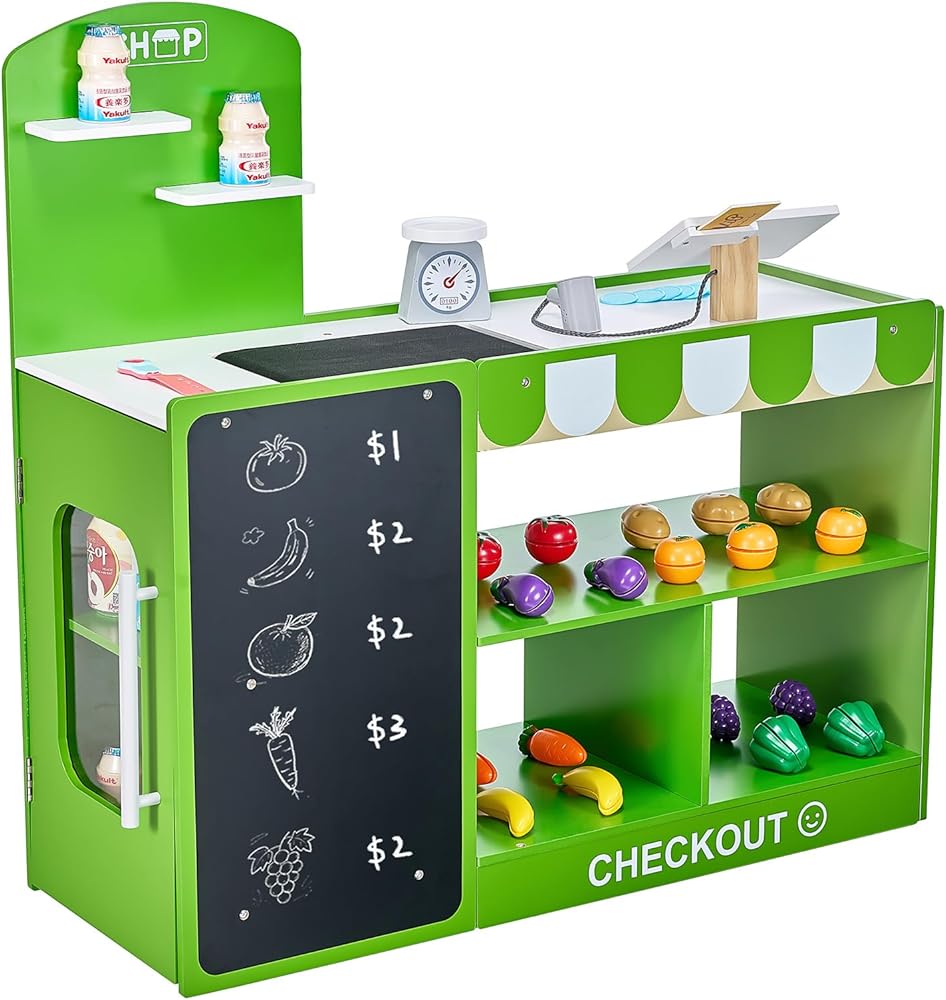High-quality Wood: Our kids play grocery store is made with MDF wood, smooth surfaces, and durable construction, secure for kids 3+ and built to last.
