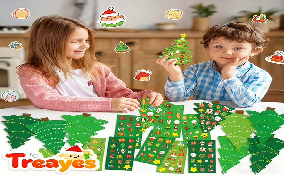 🎄 Endless Christmas Creativity – Includes 24 tree-shaped cards, 24 sheets of festive stickers (Santa, snowmen, presents, etc.), and 24 gold ribbons, , letting kids design their own unique holiday trees for hours of screen-free fun.