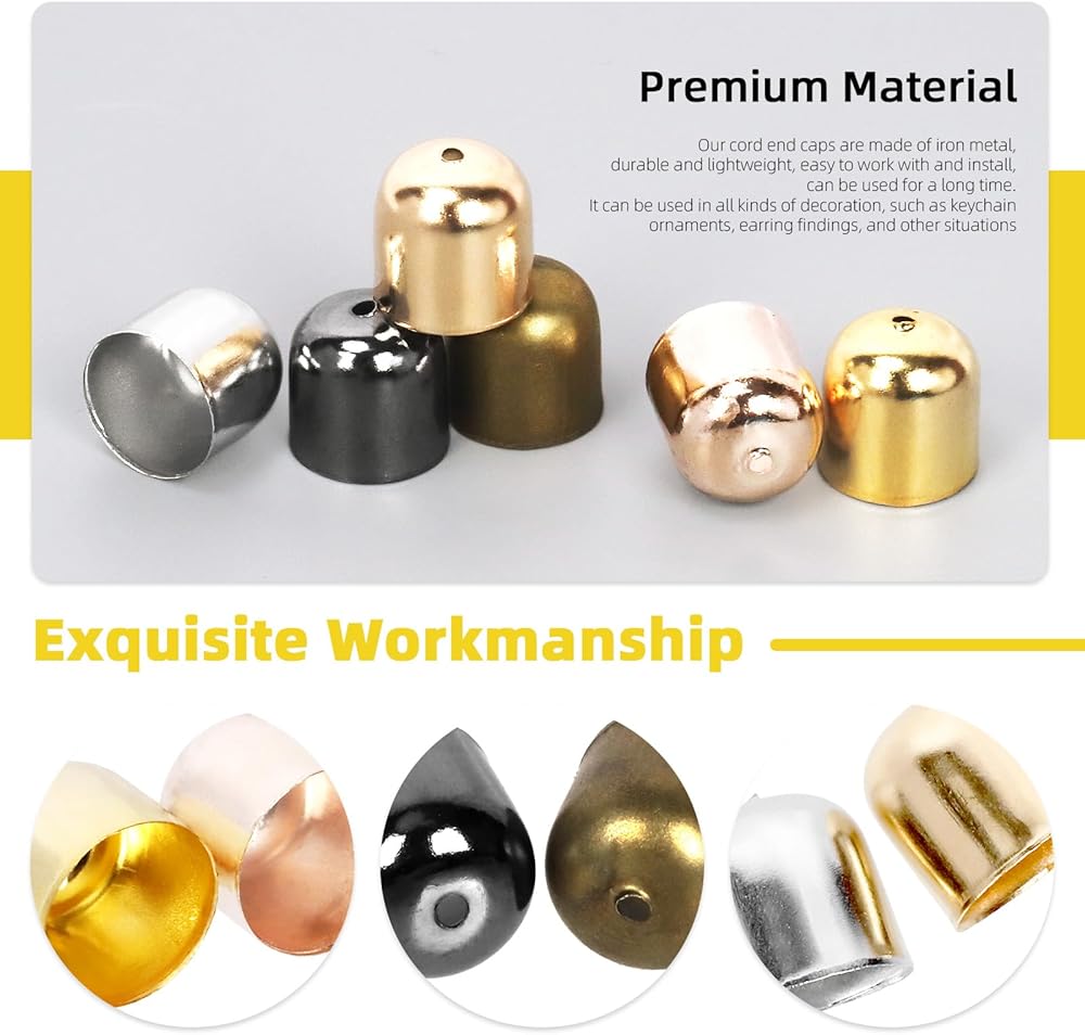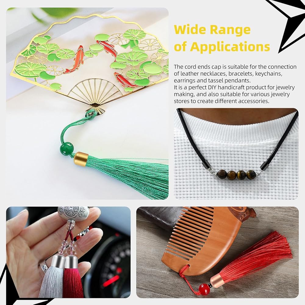 5️⃣ Wide Applications:These suede fiber crimps end caps are practical supplies for jewelry making, you can apply these metal cord end caps for bracelets, necklaces, leather, silk, tassel making, these cord ends are compatible with tassel, lace and other objects.