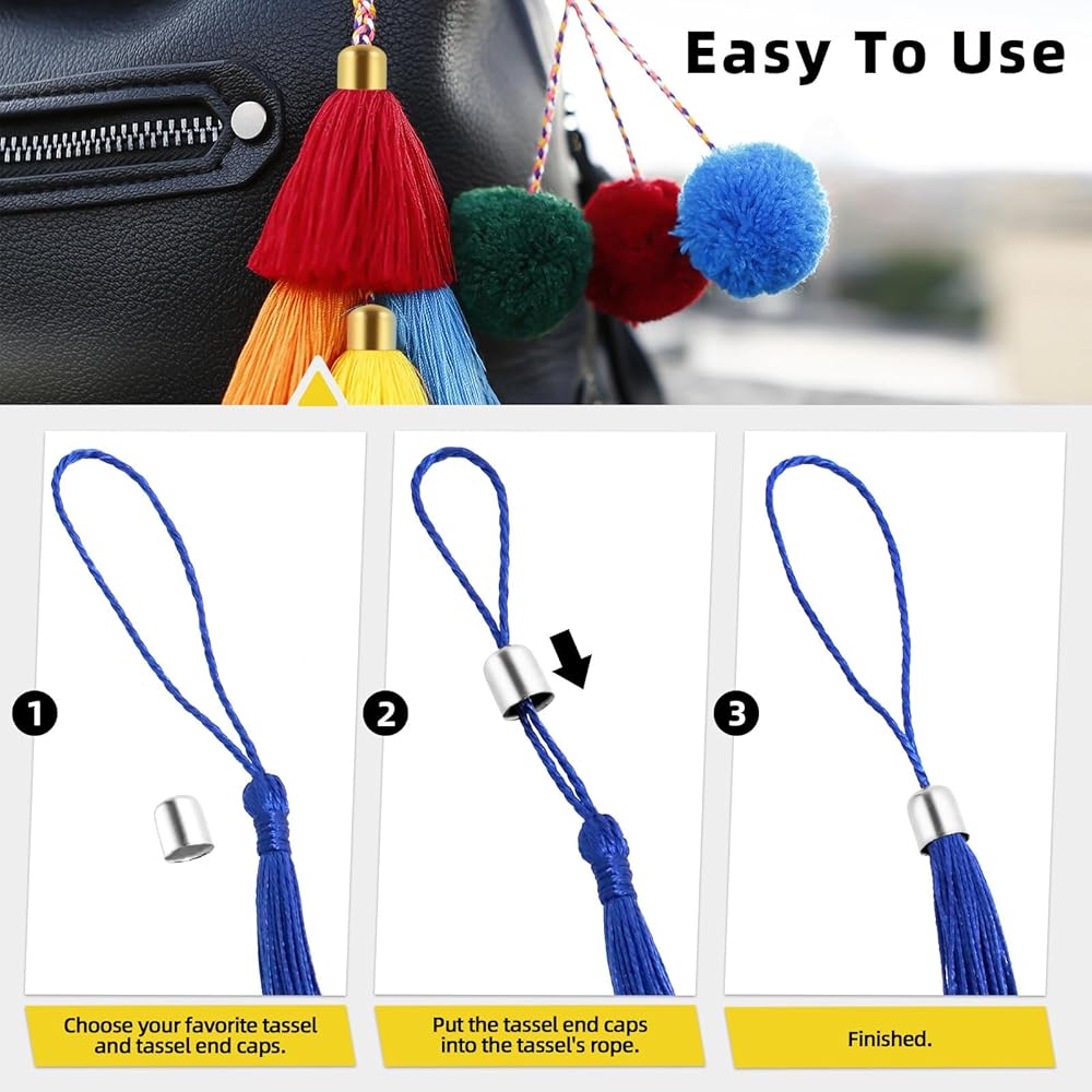 2️⃣ Material: Tassel leather cord end caps are made from quality metal material, strong and durable, tarnish-resistant, easy to work and install, corrosion and tarnishing, smooth surface, light weight, ensure long-term use.