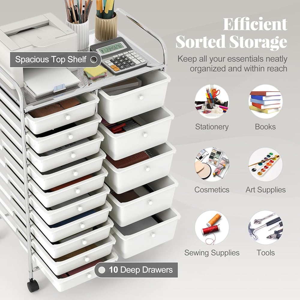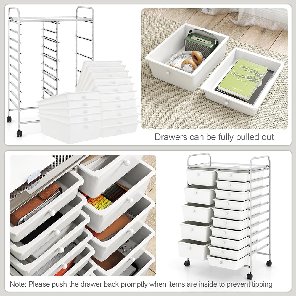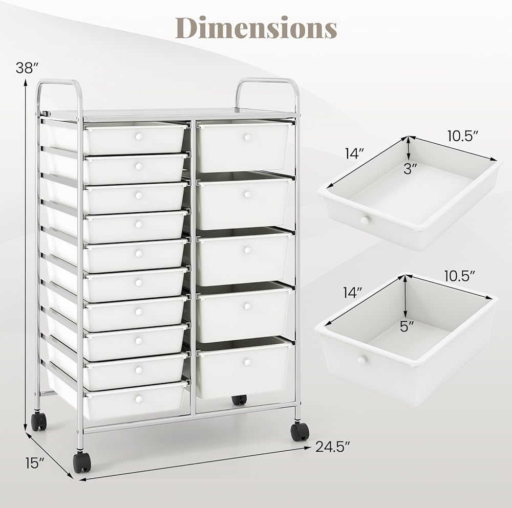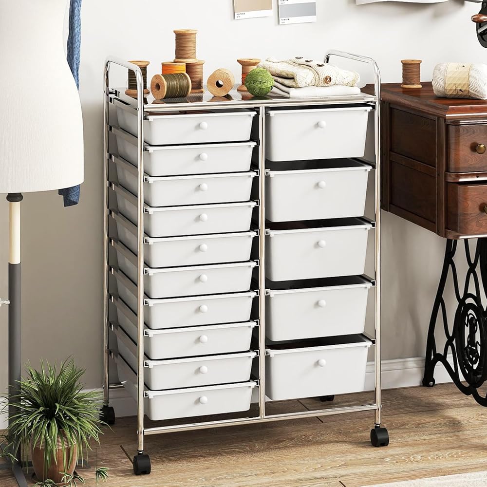 Keep all your essentials neatly organized and within reach with our 15-drawer rolling storage cart!