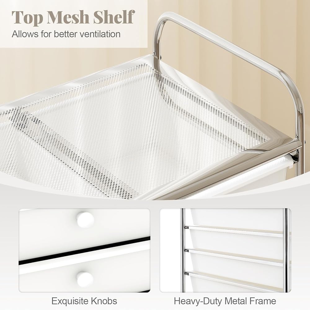 Top mesh shelf allows for better ventilation and extra storage space