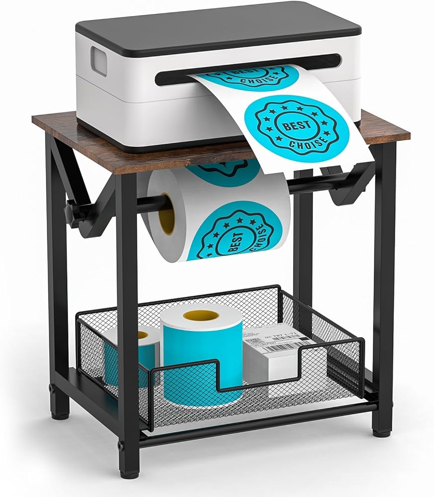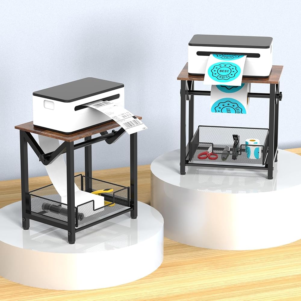 𝐃𝐮𝐫𝐚𝐛𝐥𝐞 𝐚𝐧𝐝 𝐒𝐭𝐮𝐫𝐝𝐲 𝐌𝐚𝐭𝐞𝐫𝐢𝐚𝐥𝐬: Specially customized for label dispenser, using high-quality solid wood panels and high-strength carbon steel frames,this thermal printer stand can support up to 18lb. The sturdy design and the anti-slip bottom pad ensure the holder stays firmly in place, providing long-lasting durability and stability.