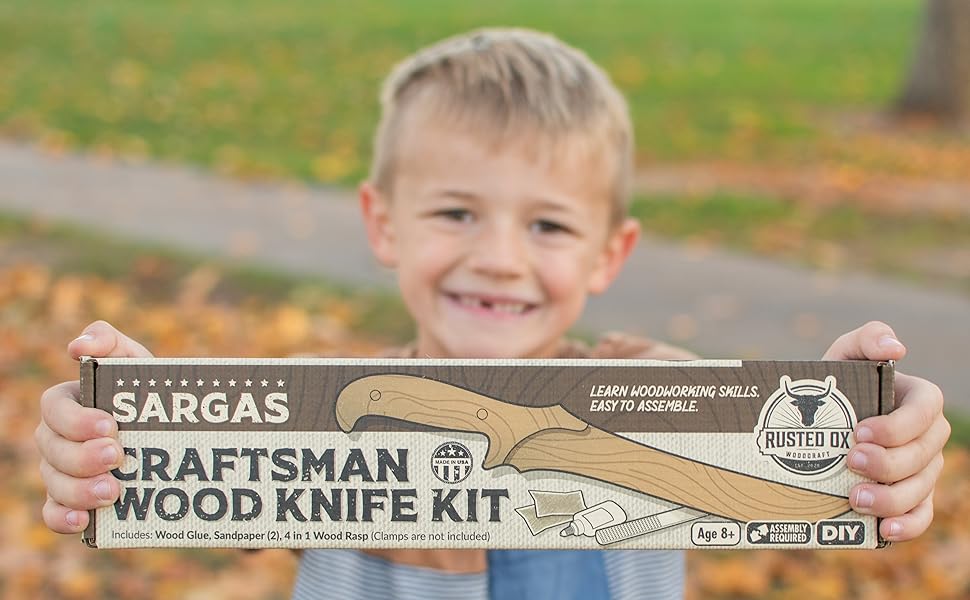 Complete Wood Knife Making Kit - This kit from Rusted Ox Woodcraft has everything your young or adult craftsman needs to make their own classic wood knife. Designed for makers of all ages. This kit is perfect for introducing kids to woodworking skills and the joys of DIY projects.
