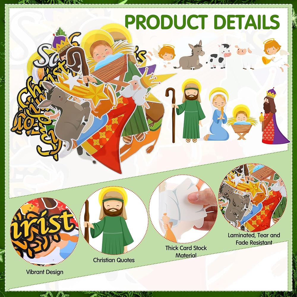 Each piece of Christmas nativity bulletin board set is lovingly crafted to depict the iconic nativity scene, fostering a deep connection to the true essence of Christmas.