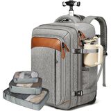 Vancropak Expandable Travel Rolling Backpack with Wheels, Airline Approved Wheeled Backpack with 3 Packing Cubes, 17 Inch Roller Carry on Luggage Suitcase Laptop Bag for Men Women, Grey