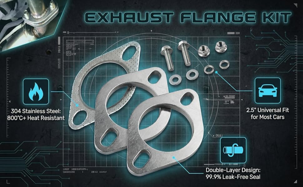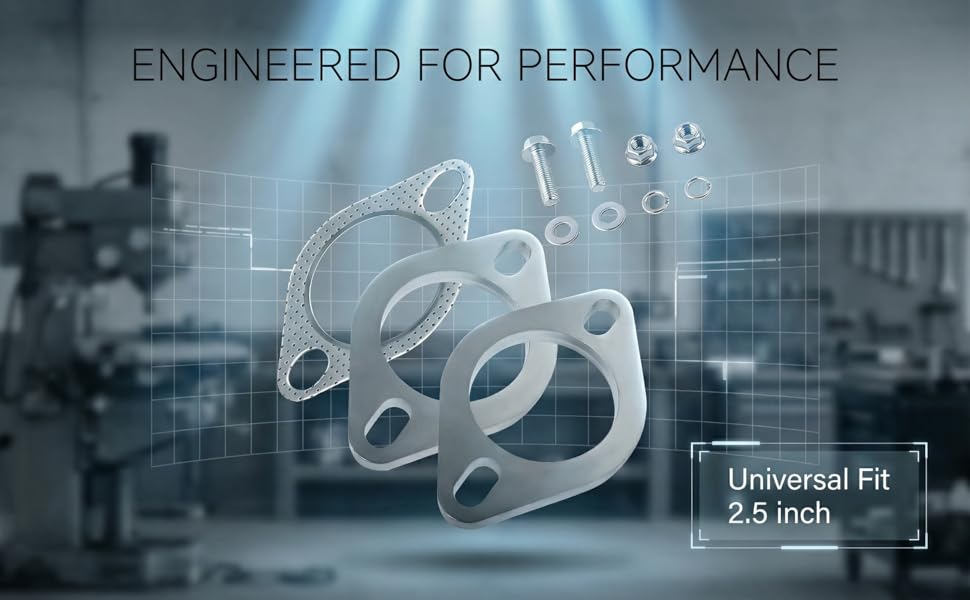 Universal 2.5-inch Compatibility: Designed for 2.5-inch outer diameter exhaust systems, with an elliptical bolt hole pattern (2.9~4.6 inches/74~117 mm spacing). It fits most cars, trucks, SUVs with compatible exhaust flange configurations.
