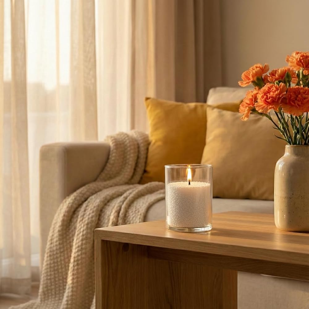 3. Endless Creative Possibilities - Shape your candle in glass jars, ceramic bowls, vintage cups, or open trays—our versatile pearled candle sand flows smoothly into any container. The flame stays bright and steady with sand candles with wicks, making every creation unique, decorative, and beautifully luminous.