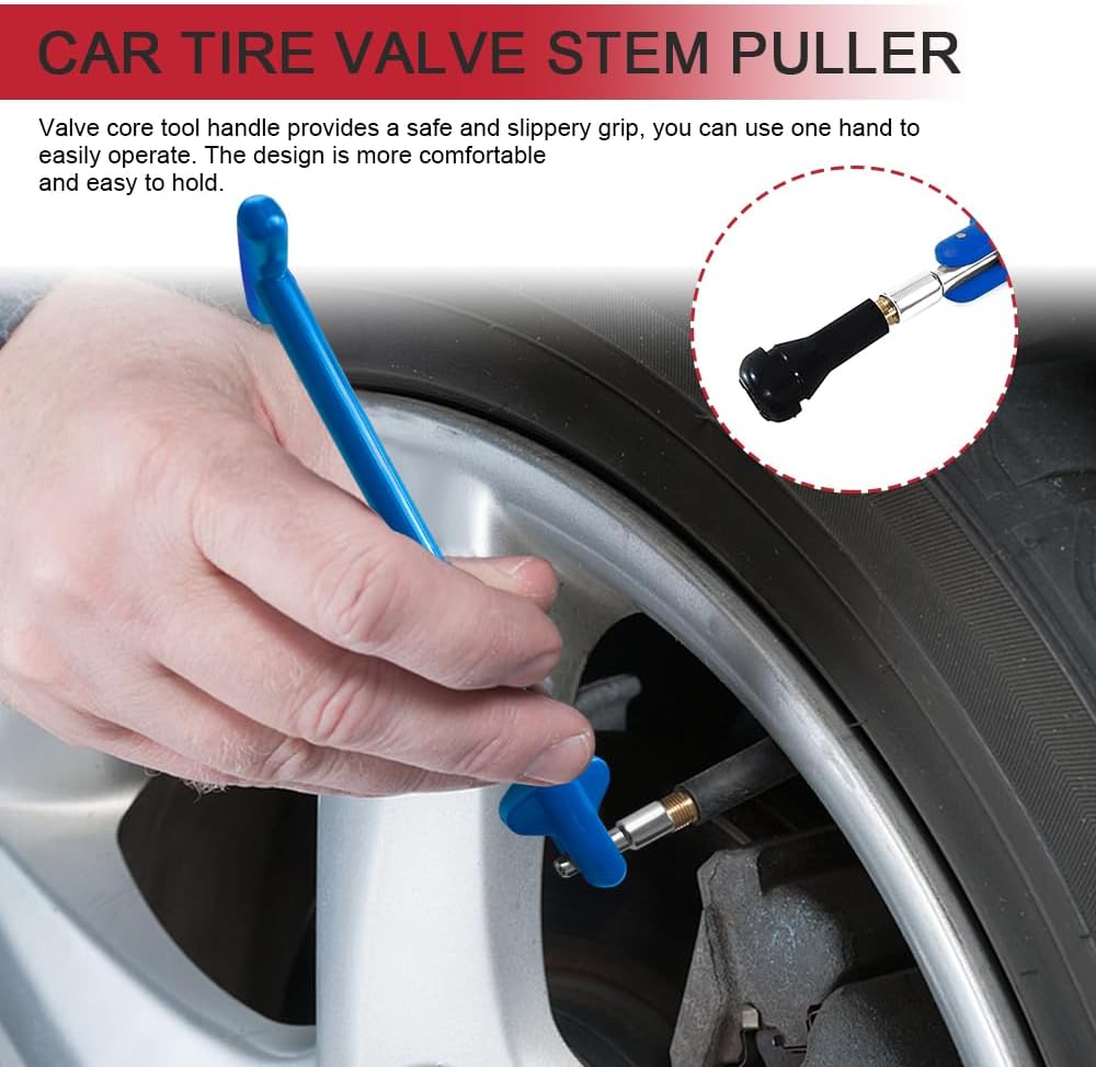 Car Tire Valve Stem Puller, Valve Stem Removal Tool, No Scratch High Tensile Strength Valves Lever Tool, Auto Tire Repair Replacement Accessories Fit for Most SUV Motorcycle Truck (Blue)