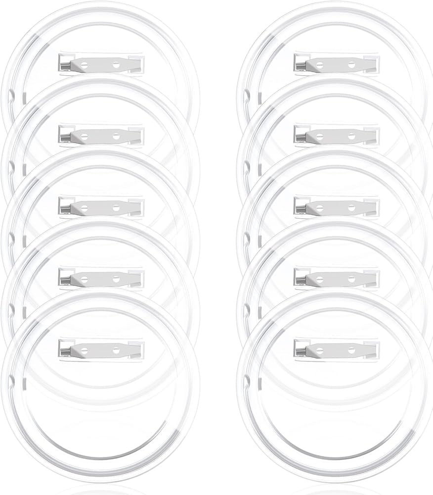 Packing List: 10 Sets Blank Button Pins (Includes 10 Clear Acrylic Covers, 10 Backings with Pins)