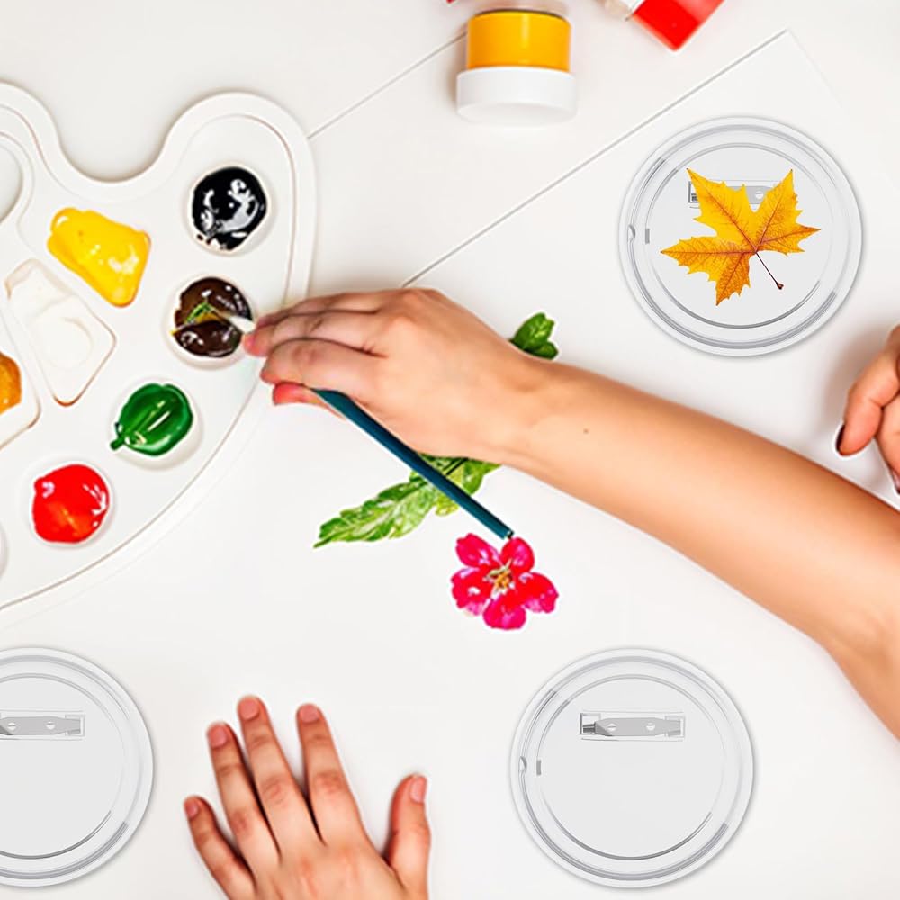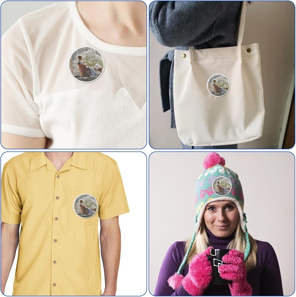 【Multi-Purpose Application】 Ideal as decorative accessories for bags, jackets, or hats, these make your own badges serve as event badges, promotional tools, or personalized gifts. The neutral transparent style complements any attire or theme, suitable for corporate gatherings, school functions, or craft hobbies across all ages.