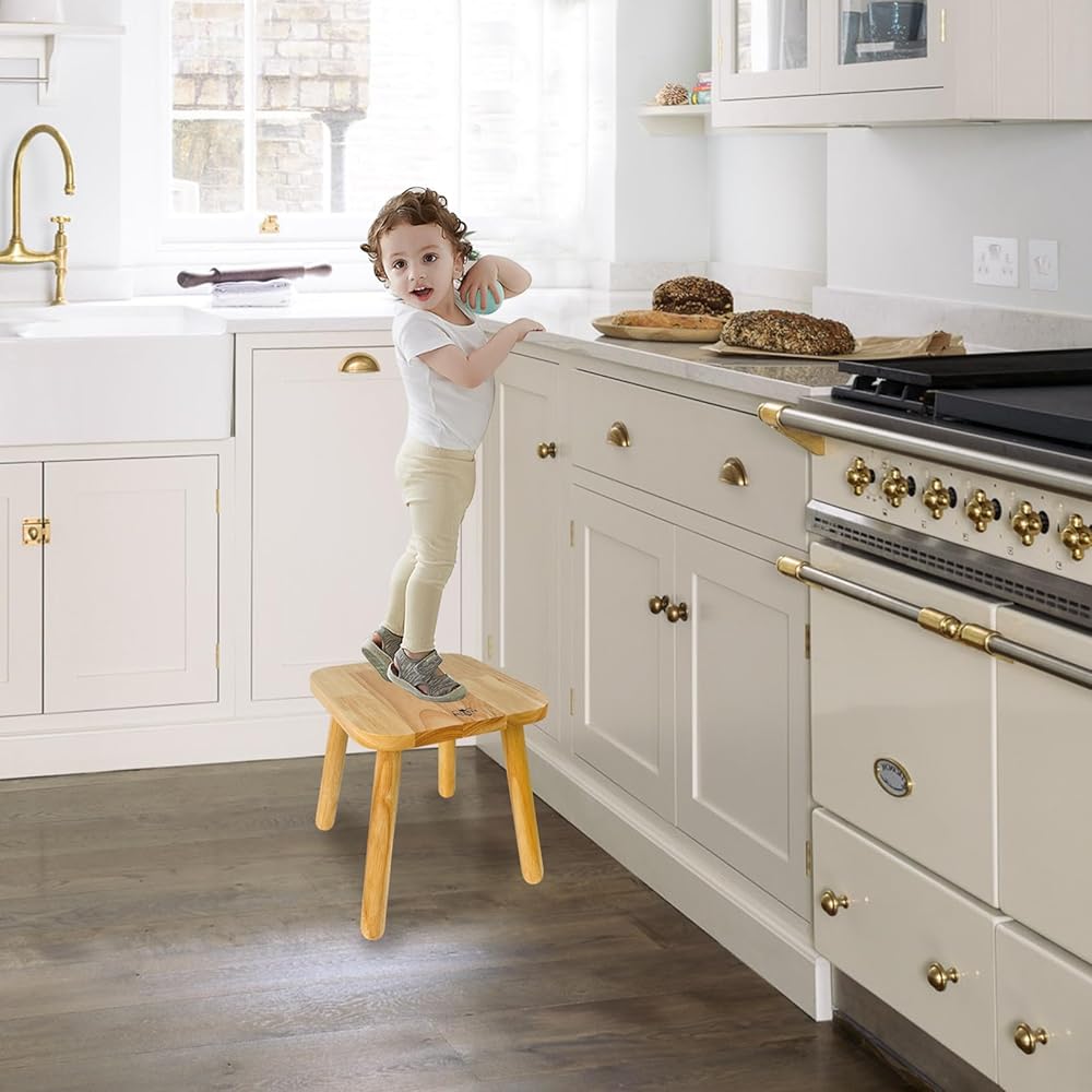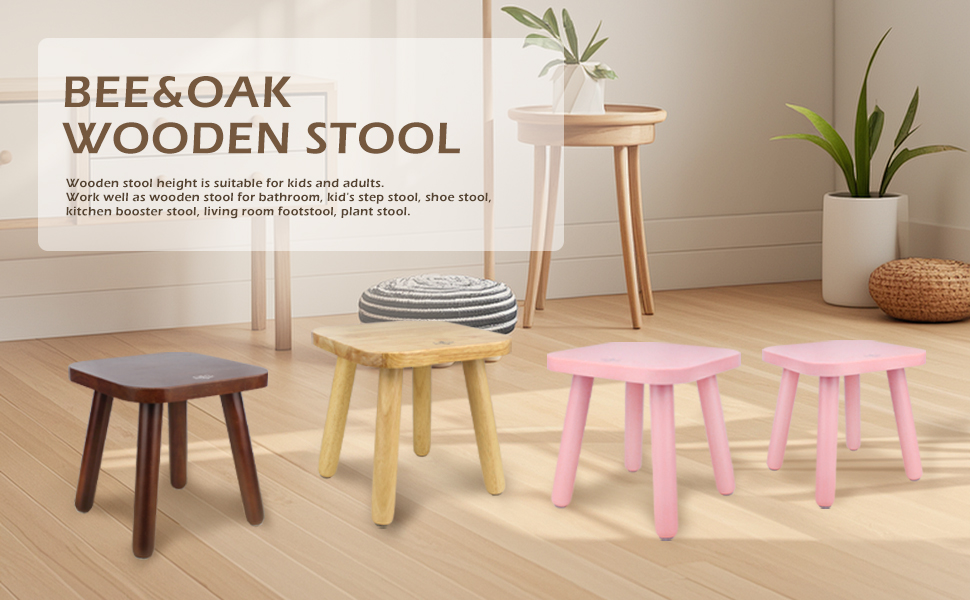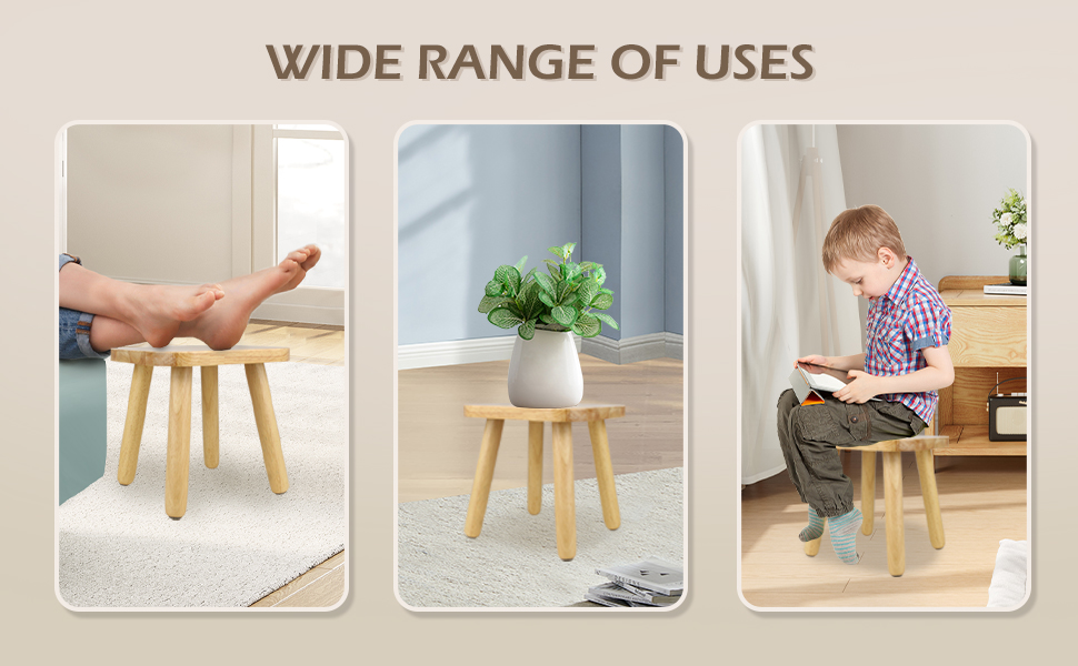 NATURAL SOLID WOOD,SAFE DESIGN: Made of high quality natural rubber wood, healthy and environmental friendly. All the corners of the small stool are designed to be rounded to prevent bumping, smooth surface without abrasion, it ideal sitting stool choice for children and adults
