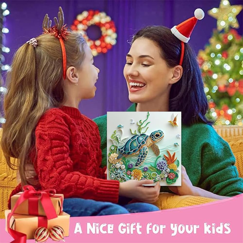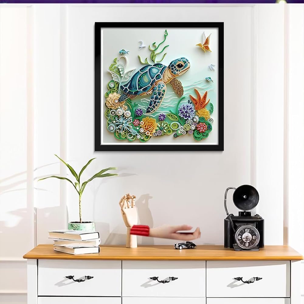 ELakiss 13.8x13.8Inch Sea Turtle Diamond Painting Kit, DIY Special Shape Gem Art for Adults Beginners, Crystal Rhinestones Crafts with Diamond Art Accessories for Home Wall Decor