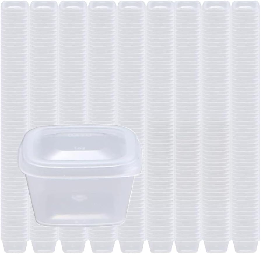 Capacity Control: 100 Pieces disposable souffle cups with lids, 1 oz (25 ml) capacity. Many food enthusiasts use it for portion control or meal prep, as well as for making beads, sequins, pins, and slime by hobbyist DIY artisans
