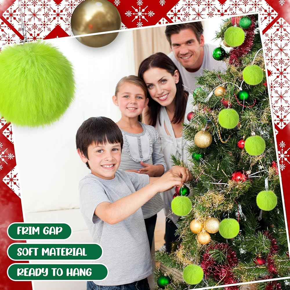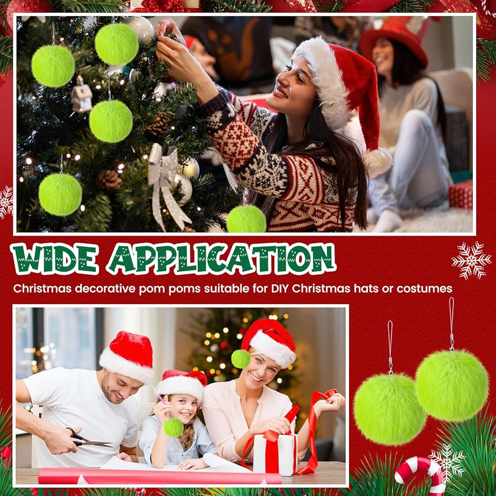Nuenen 72 Pcs 3.15 Inch Lime Green Furry Christmas Ball Ornaments Christmas Pom Poms Ornaments Faux Rabbit Fur Balls Bulk with Elastic Band for Xmas Tree Decorations DIY Craft Hat Keychain (Green)