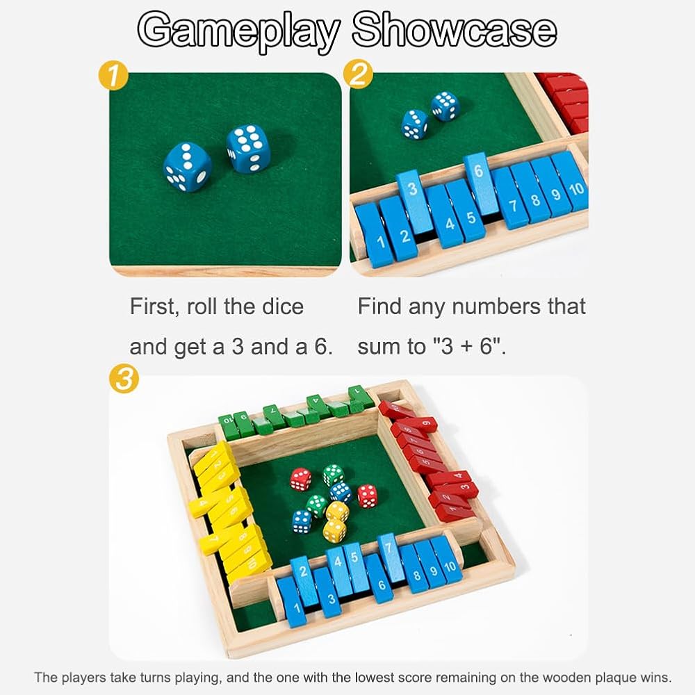 【Multi-Player Entertainment】Designed as an engaging shut the box game 4/6 player edition, this shut the box dice game brings families and friends together for interactive fun. The generous playing surface accommodates multiple participants while maintaining clear visibility of all numbers and dice.