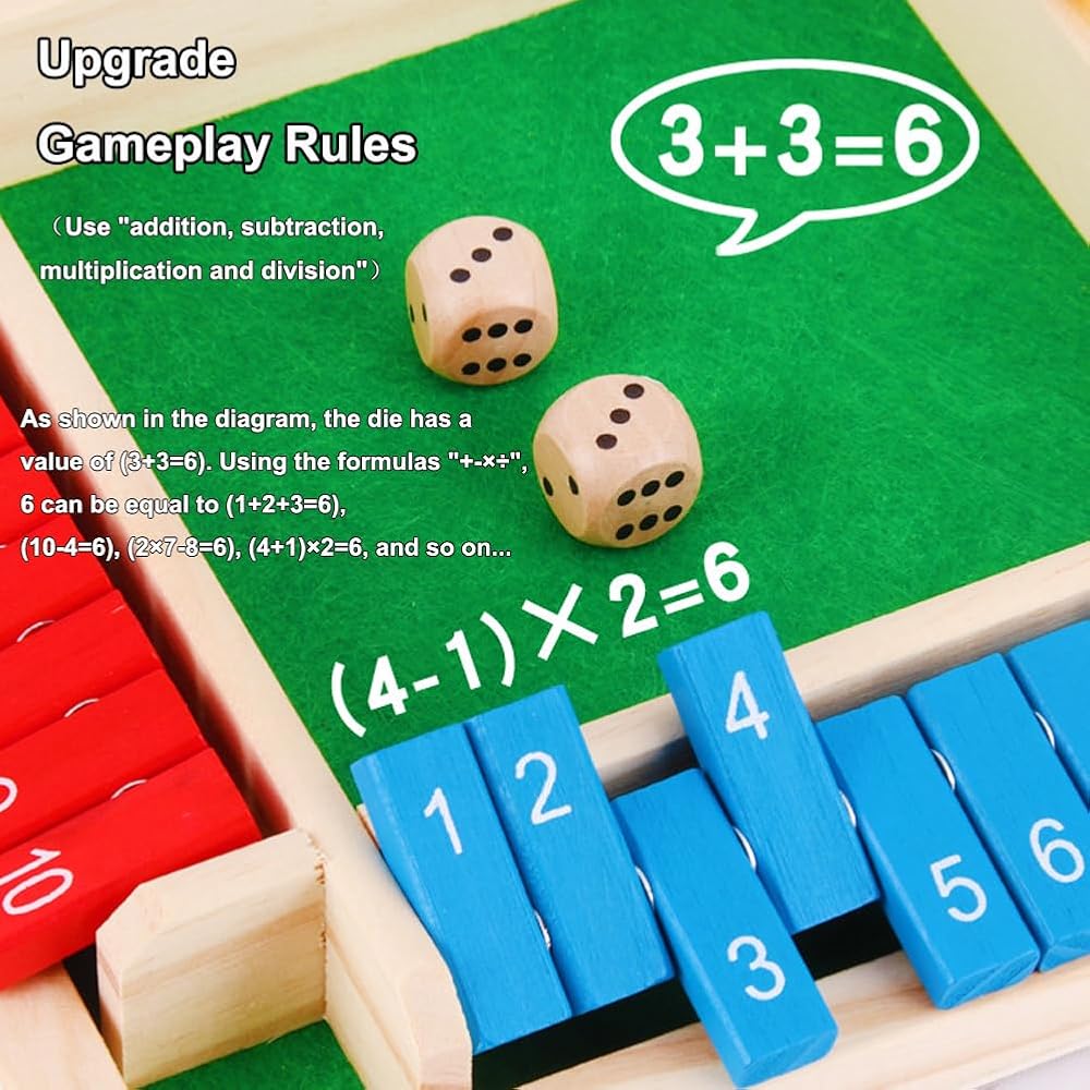 【Classic Wooden Dice Game for All Ages】Enjoy timeless fun with the Shut the Box Game Wooden! Easy to learn yet endlessly engaging—perfect for family nights, classroom activities, or casual gatherings with friends.