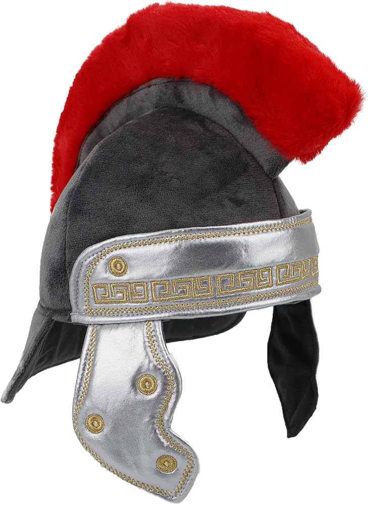 Authentic Roman Centurion Design Bring ancient history to life with this beautifully crafted plush Roman helmet featuring a bold red centurion crest, metallic silver trim, and gold embroidered detailing—perfect for little warriors who love epic adventures.