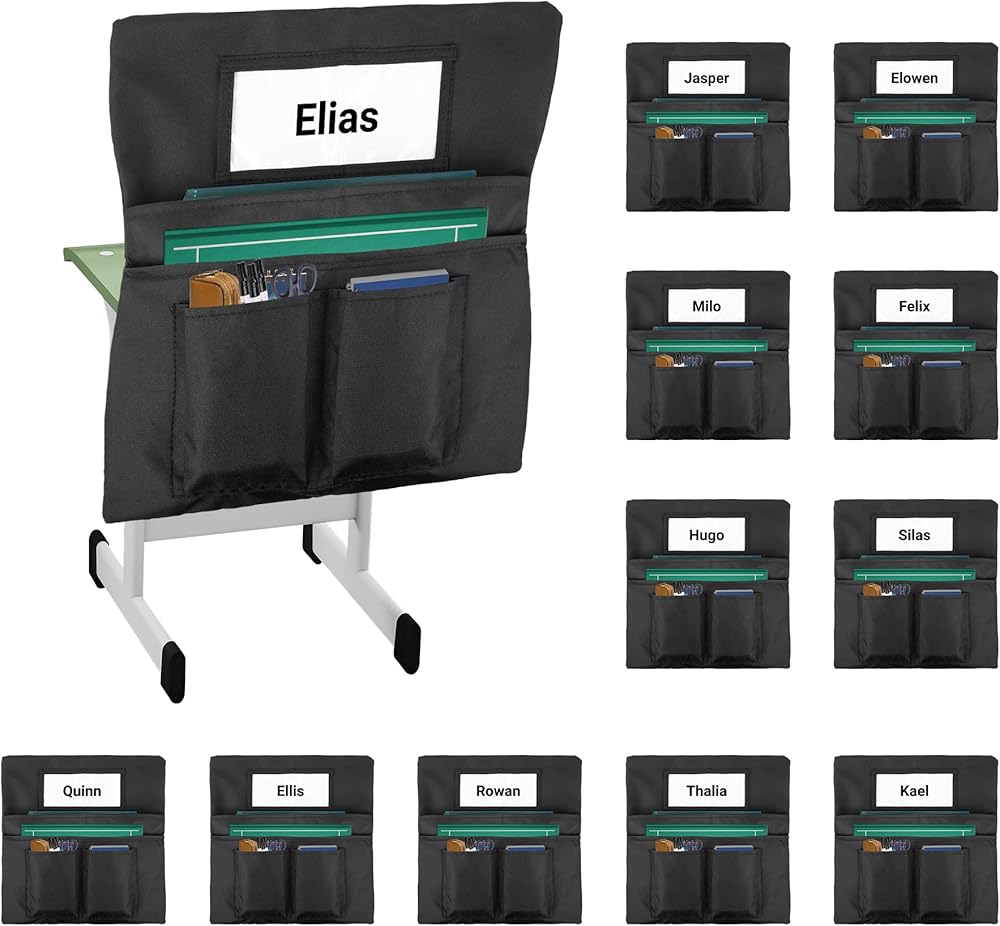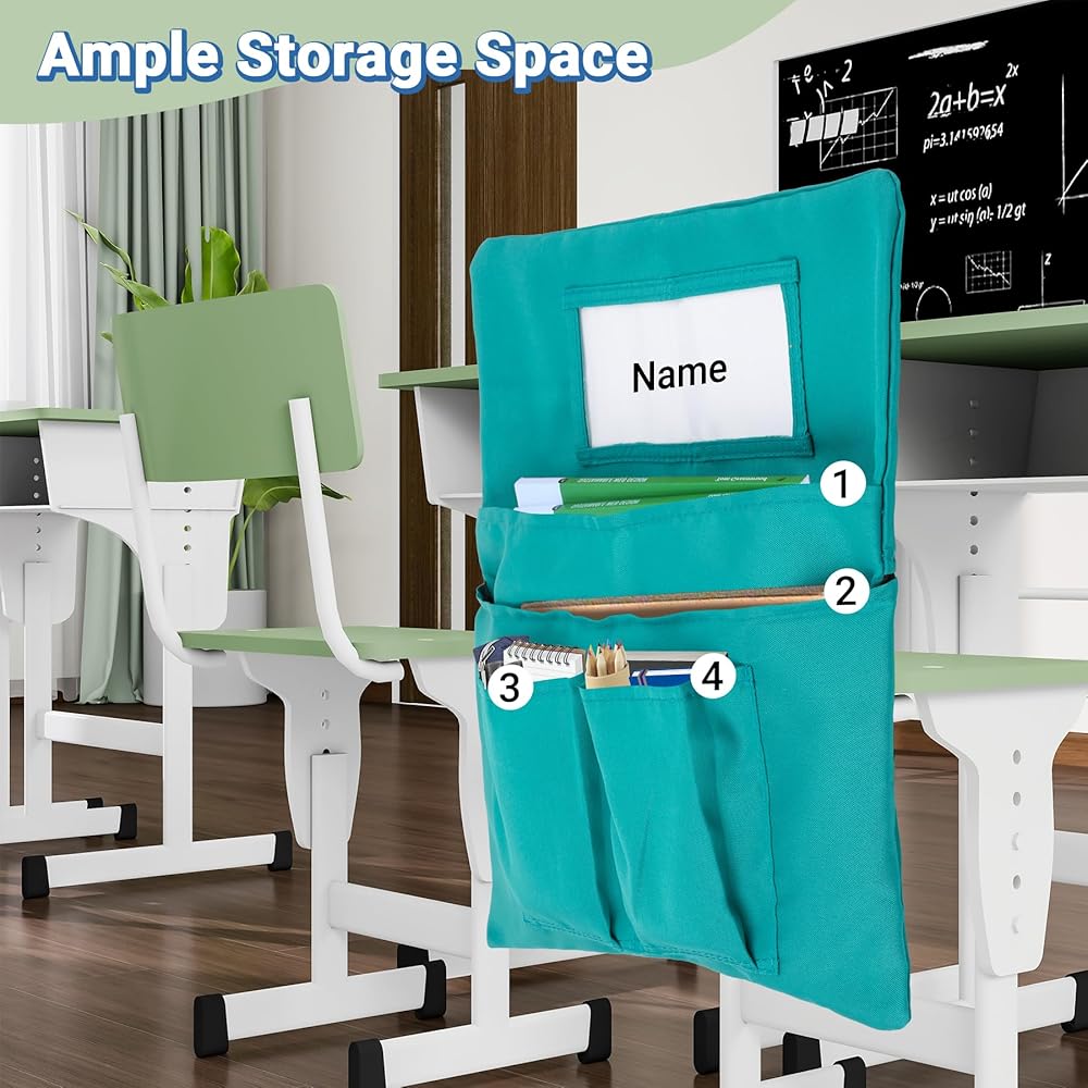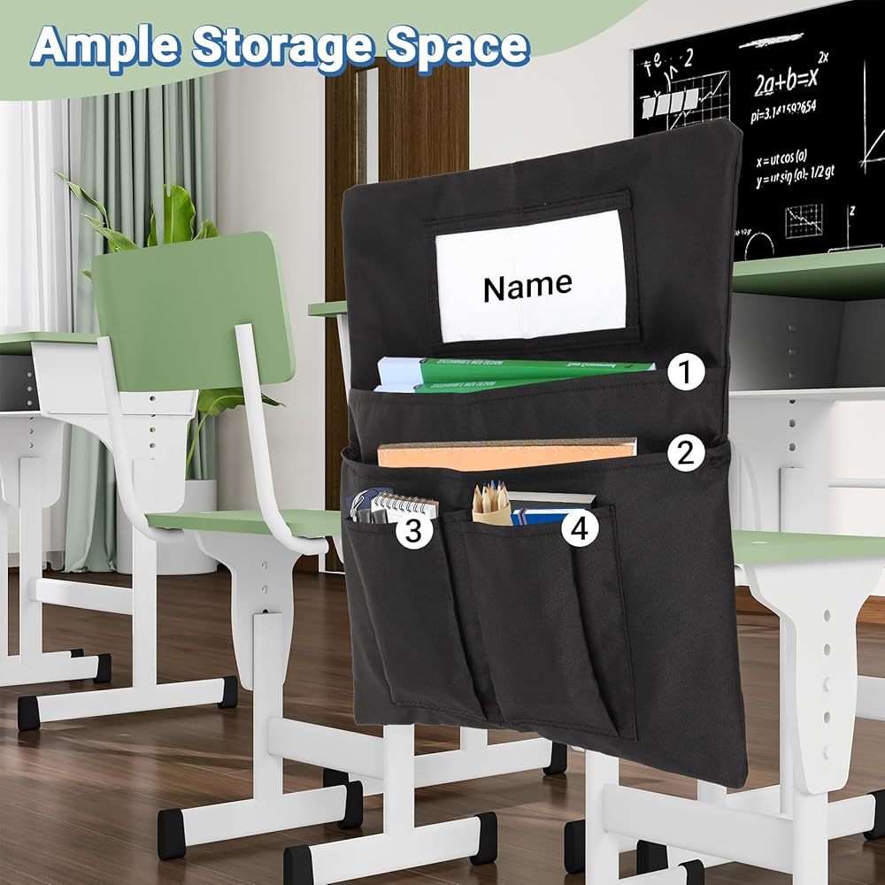 Ample Storage Space: Student chair pockets have 4 pockets, provide storage space for all needs such as pen, books, folders, etc; Seat pockets for classroom chairs meet students' chair organizer needs, suitable for school, classroom supplies