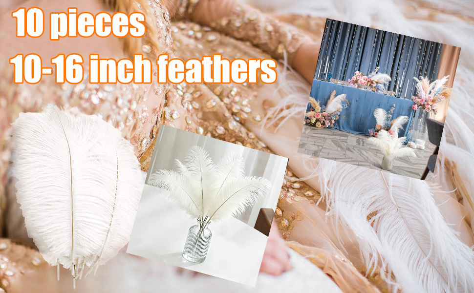 【Size & Package】Each feather measures 10–12 inches from base to tip, offering ample length for most decor and craft needs. Every package includes 10 premium ostrich plumes. As these are 100% natural products, slight variations in shape, fullness, and size are inherent—this uniqueness is part of their authentic appeal. Please note: manual measurement may result in a 0.8–1.2 inch (2–3cm) margin of error, which is not a quality defect.